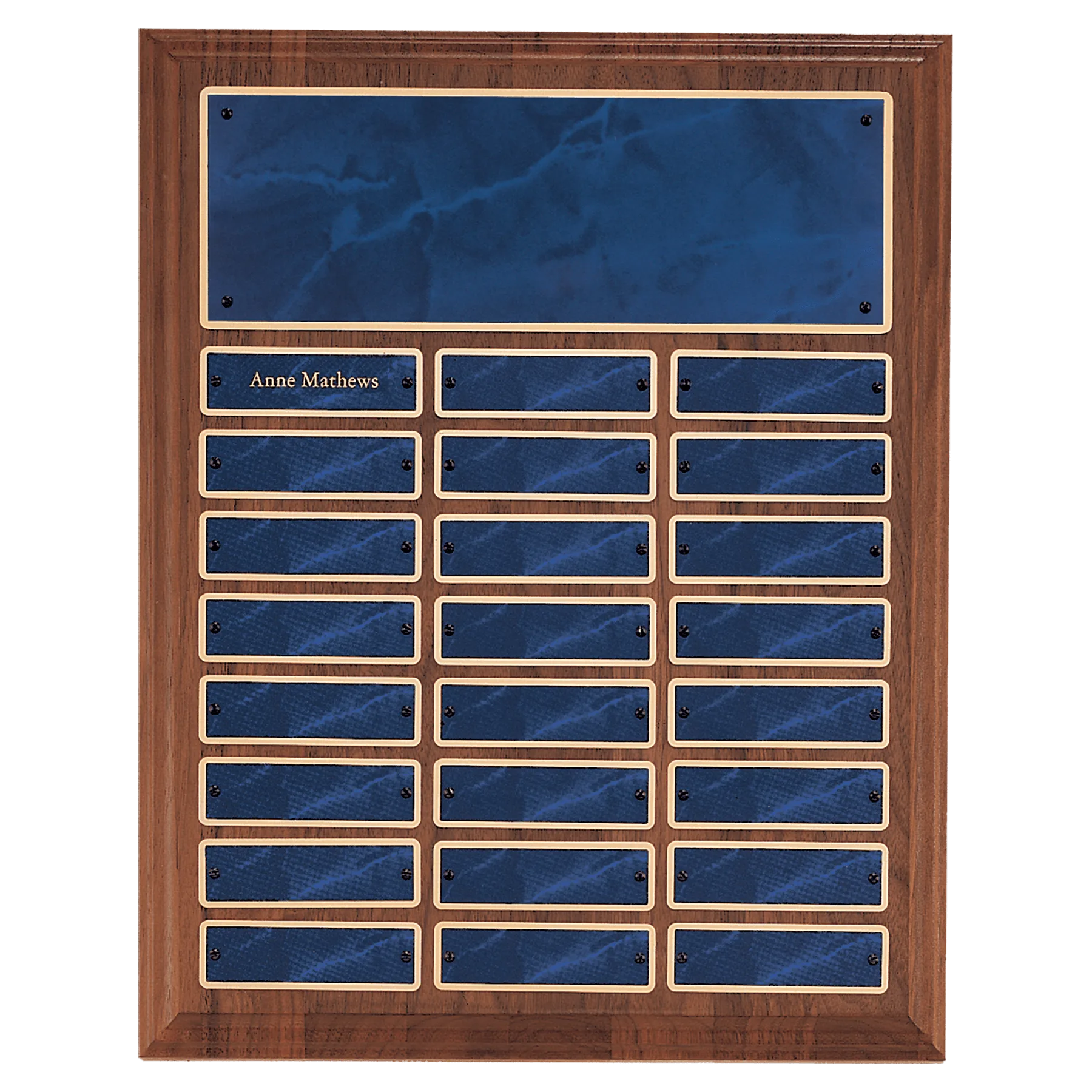 American Walnut 24 Plate Perpetual Plaque with Sapphire Marble Brass Plates