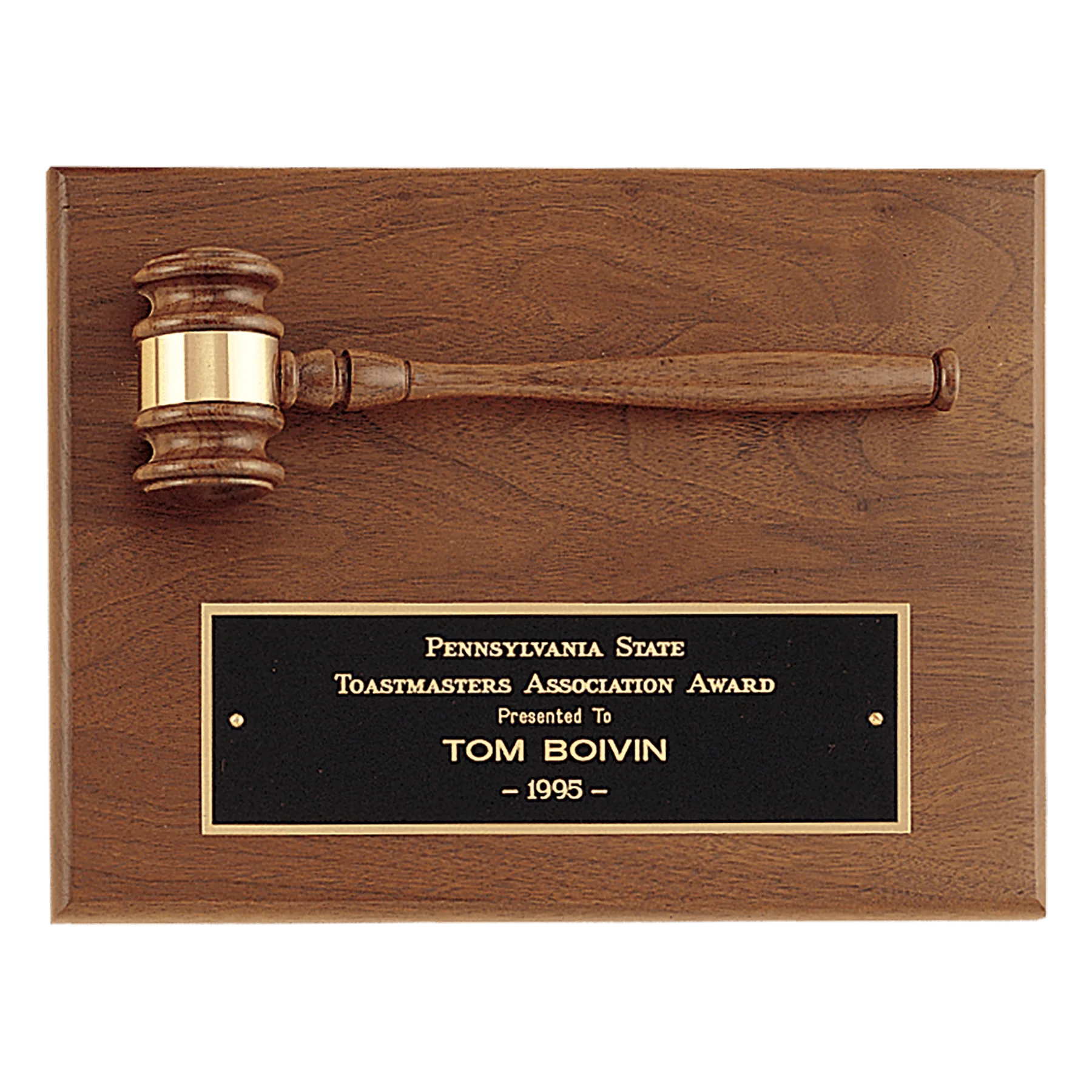 American Walnut Plaque with Walnut Gavel and Black Brass Plate