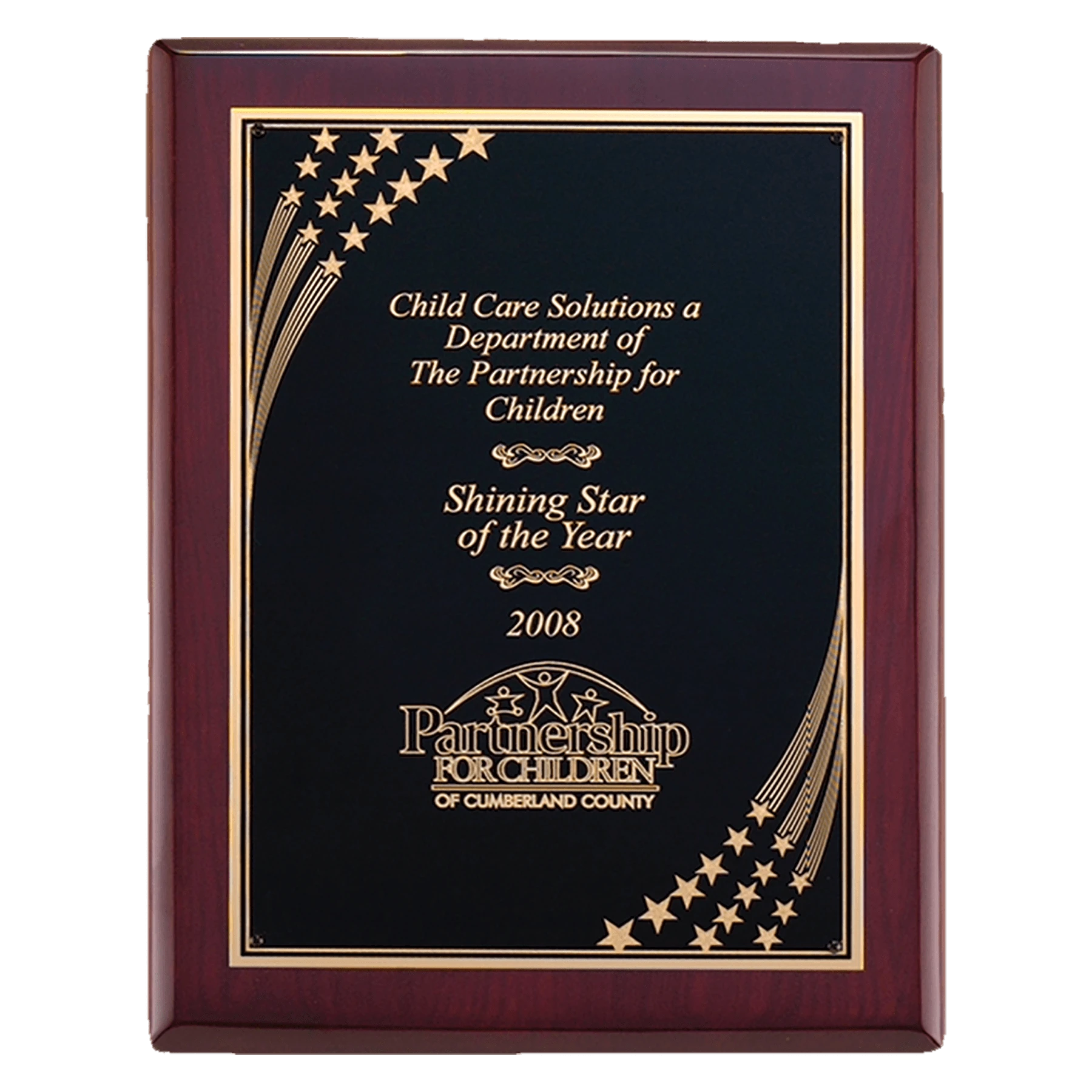 Rosewood Piano Finish Plaque with Florentine Star Shower LaserFX Plate