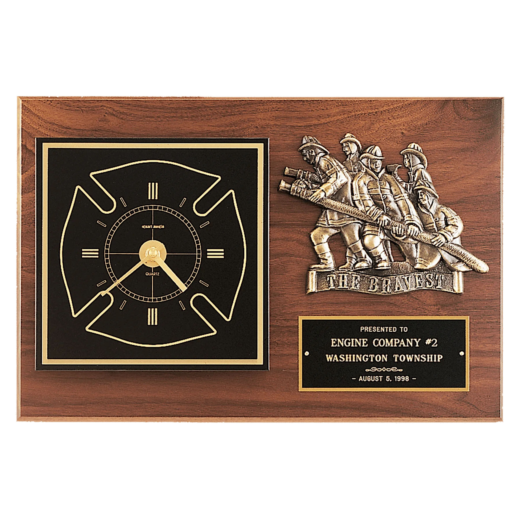 Be the first to review “Walnut Plaque w/Gold Maltese Cross Clock/Firefighter Relief/Black Brass Plate” Cancel reply